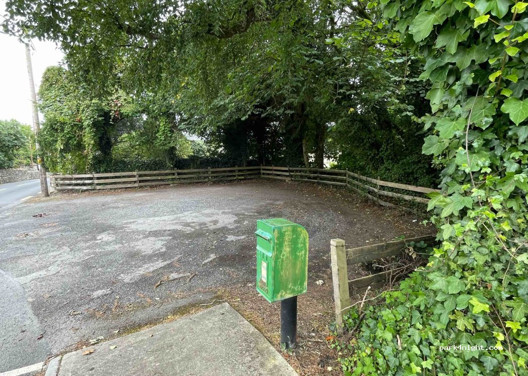 Der Parkplatz liegt genau gegenüber vom örtlichen Pub. Ganz kleines Örtchen, sehr ruhig in den Wicklow Mountains gelegen. Der Pub hat Samstags und Sonntags geöffnet und wir haben einen tollen Abend mit vielen kontaktfreudigen Iren verbracht. Vom Parkplatz aus schaut man auf eine Weide mit Eseln. Sehr empfehlenswert!!!
