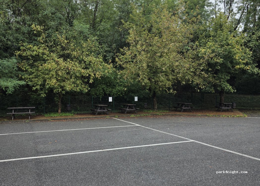Nous avons dormi sur le parking gratuit collé à cette aire seulement accessible aux vans. Sans intérêt si ce n'est que celui-ci était gratuit. Des moustiques de partout et la musique à fond toute la nuit venant du centre sportif.