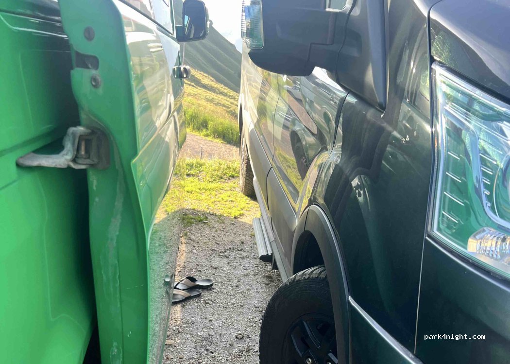 Do not attempt to park here. The turnoff road is so steep that we scraped the underside of our (LWB) van going up and then got stuck coming out, requiring traffic to stop and people to assist us pushing the van to get our wheels back on the ground. The road just isn’t suitable for LWB/MH. Furthermore, the parking itself is closed with the entrance blocked with a temporary barrier! Avoid