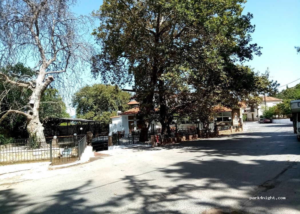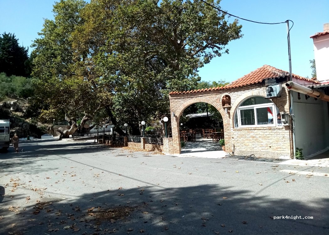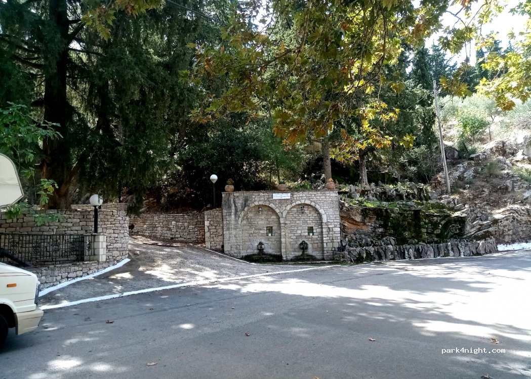 Schöner Platz mit Trinkwasserquellen, kein Rohranschluss möglich. Essen und Trinken in der Taverne und Einkaufen im Dorf. Möglichkeit zum Parken am Straßenrand.