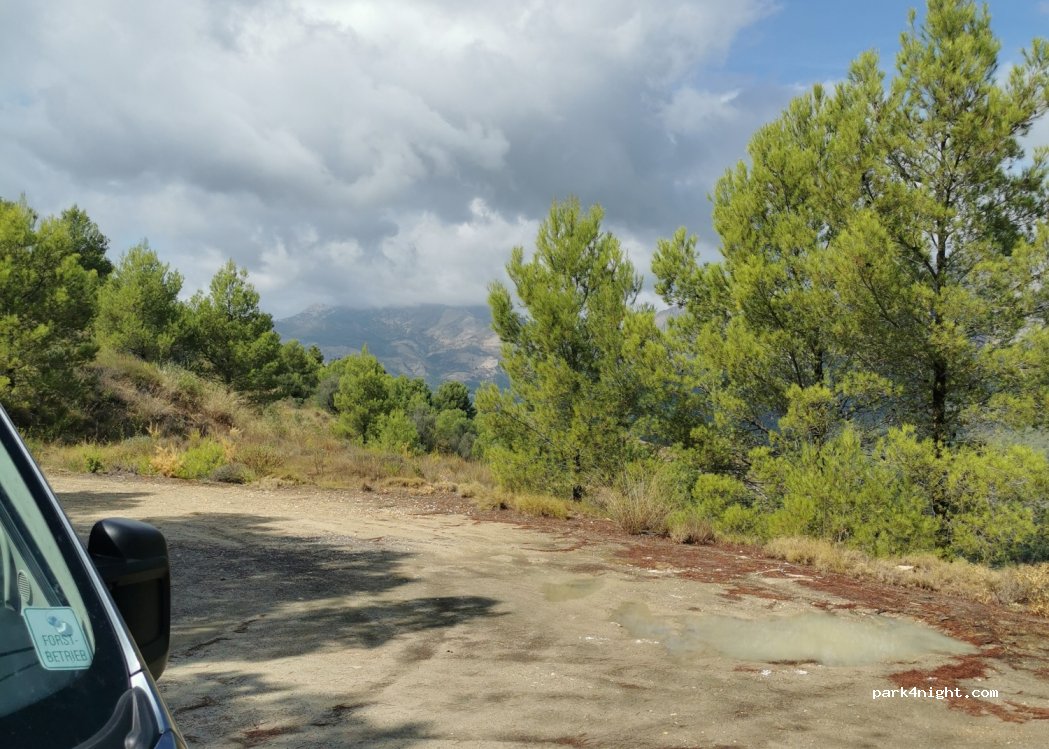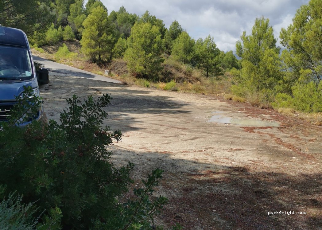 Accès directement depuis la route secondaire assez raide.... attention aux racines d'arbre qui affleurent....le terrain est brut mais plat et stable. ...on est à 15 mètres de la route bitumée d'accès qui en forte déclivité. Aisé pour manoeuvrer avec grand camping car. Très calme car écarté de la grande route et des habitations. Belle vue vers le bas.