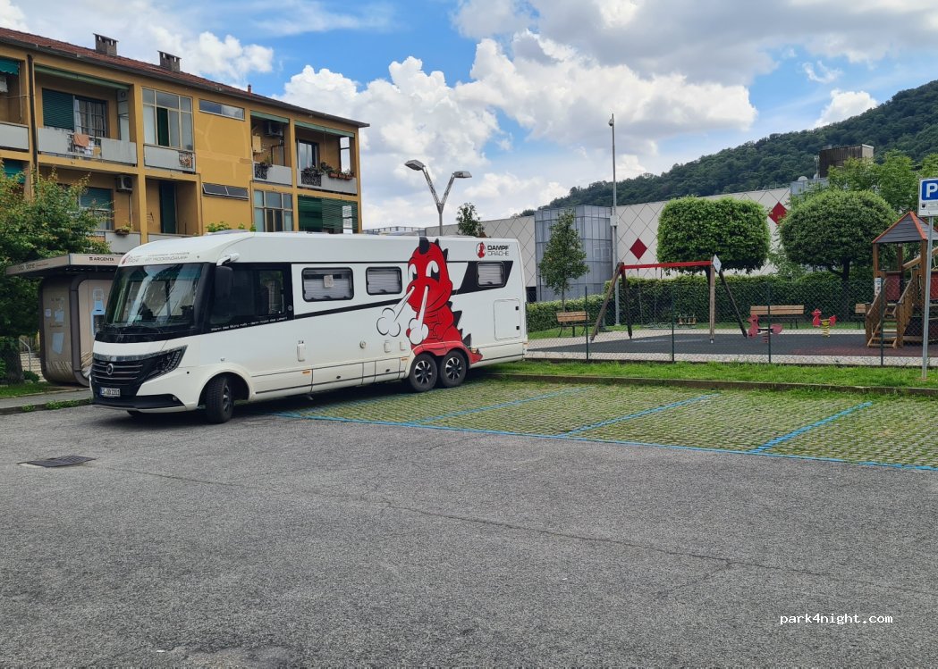 Parcheggio tranquillo per una notte, non c'erano tanti rumori. Proprio di fronte un bellissimo parco giochi per i bimbi e una casetta dell'acqua. Si raggiunge il centro di Cernobbio in circa 15 Min a piedi. Ci siamo stati con il nostro 7,20 mt mettendo la coda sull'erba.