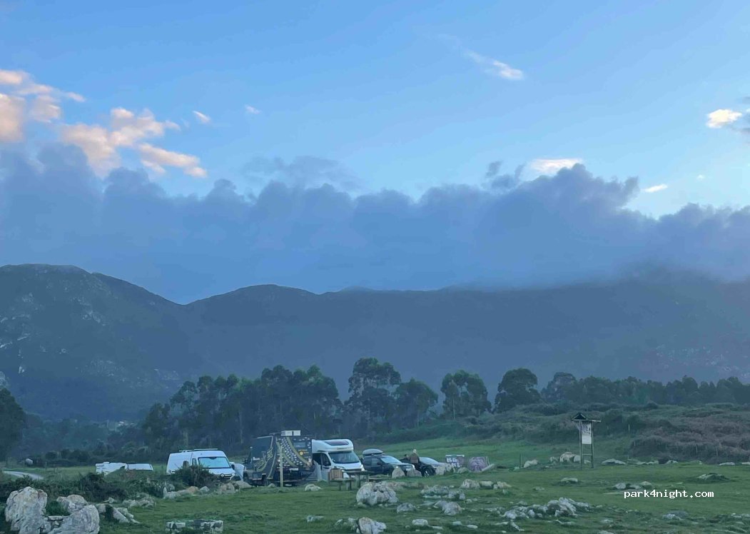 Sitio muy tranquilo, vistas espectaculares, cerca de los bufones de Pria que es una de sus vistas. Normalmente los coches que hay son de pescadores. Mesas y barbacoas y una fuente de agua. Un poco de pendiente para dormir y acceso en algún tramo bastante estrecho.