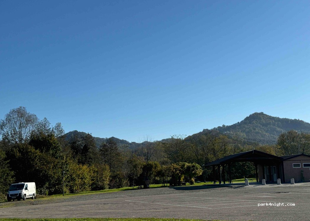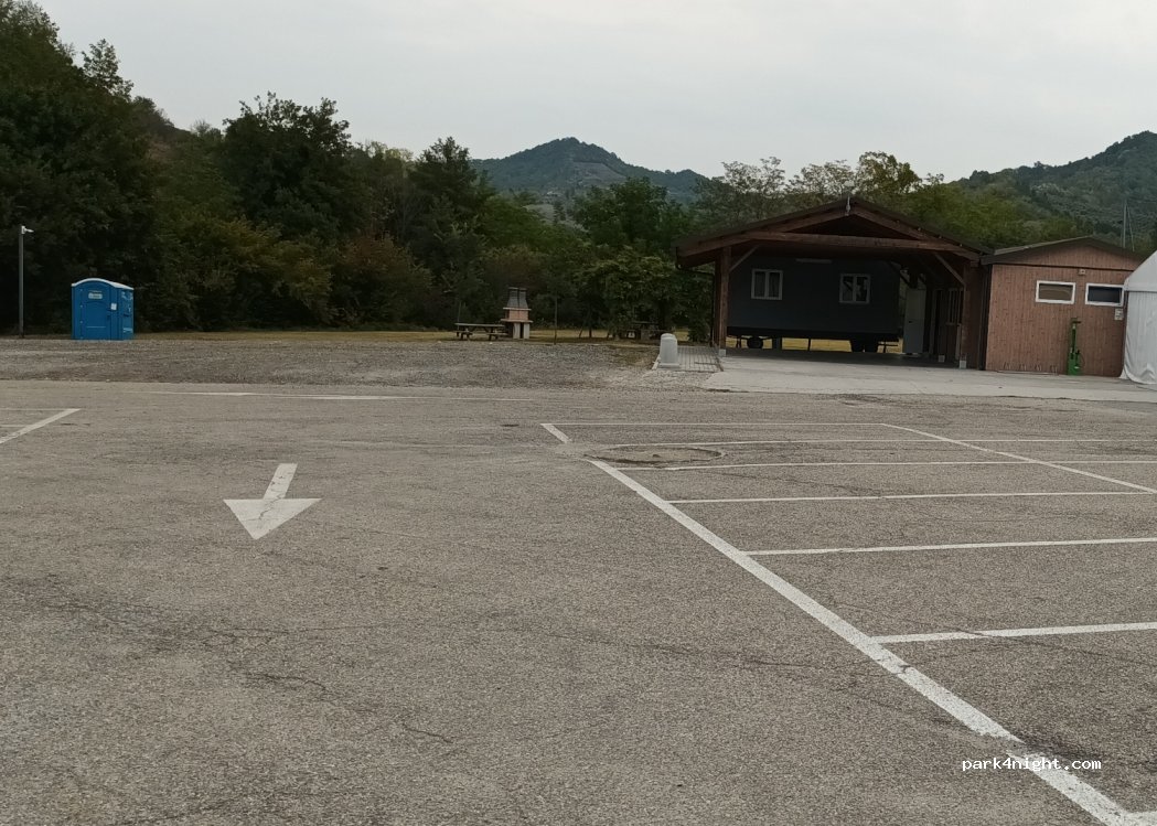 Area parcheggio Comunale, poco segnalata, giorno e notte, barbecue presente ed area per bambini.
