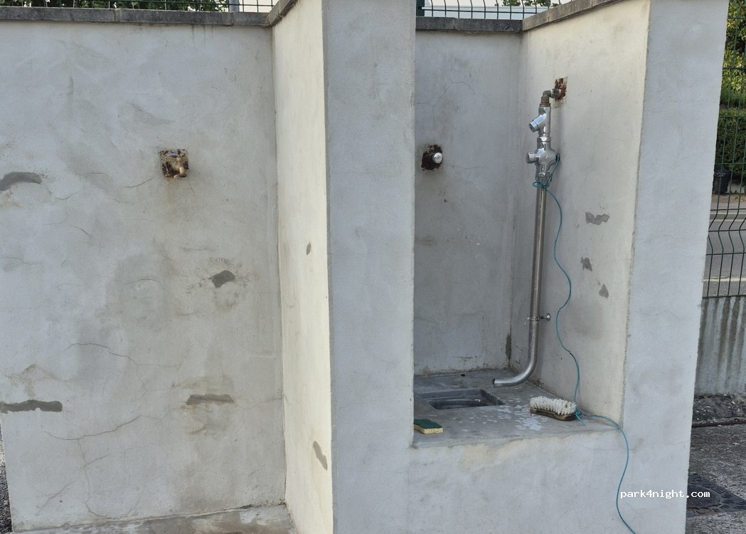 Nous avons pu faire le plein d’eau gratuitement et les vidanges sanitaire et eaux grises mais ce n’est pas une aire agréable pour y passer la nuit au vu de l’environnement, de la route à côté et des places collées les unes aux autres. L’avantage de cette aire réside dans les services gratuits et utiles. L’aire était propre à notre passage.