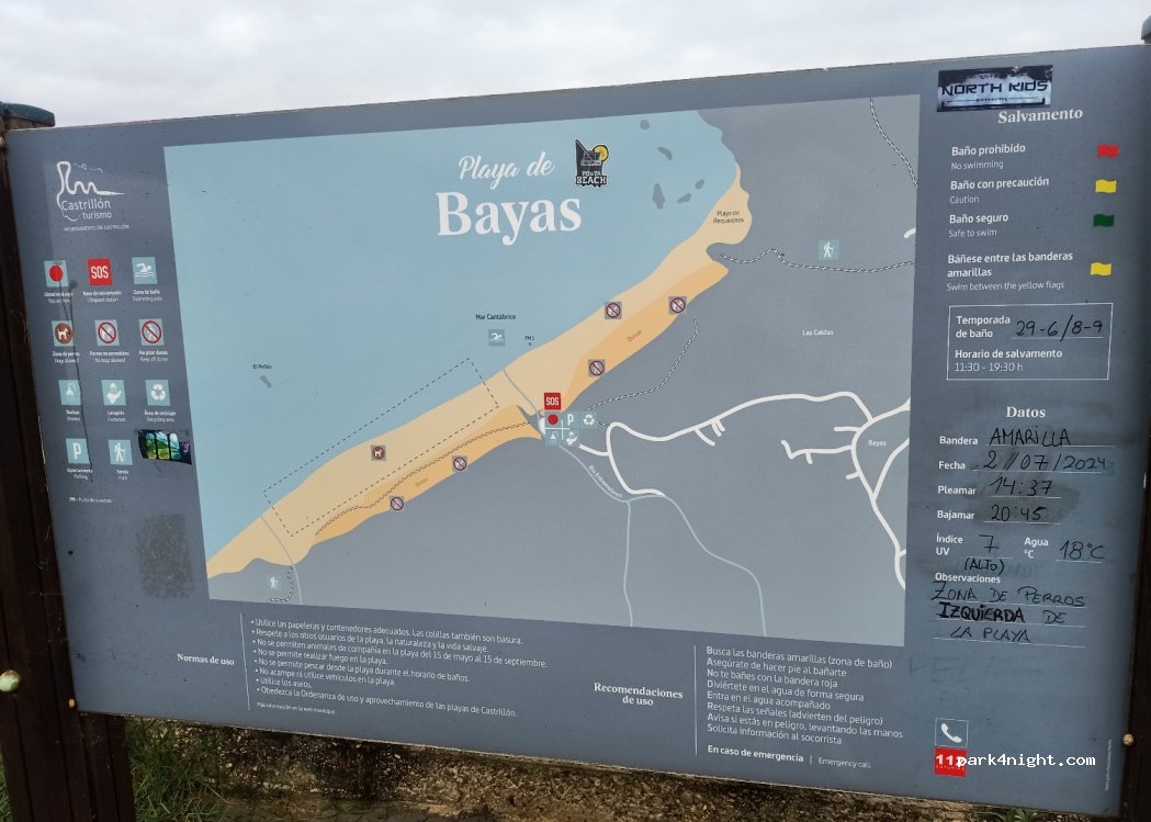 Bayas beach ATTENTION. The City Council of Castrillón has prohibited overnight stays. They distribute information sheets in the afternoon and report in the morning to the registrations reported the day before.