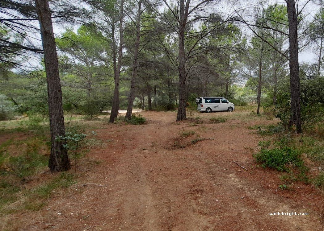 Bel endroit en forêt pour dormir situé en bord en bord de route, un peu de passage mais ça va … seul bémol on entend bien l’autoroute au loin. Sinon nous étions seuls nous n’avons croisé personne et il y a de la place pour stationner sous les arbres. Je recommande.