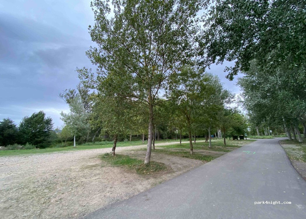 El lugar es de 10. Por la tarde habían otros coches y furgonetas pero por la noche nos quedamos solos. Al final del paseo hay una ruta de nivel bajo que va al lado del río. No tiene servicios pero hay dos contenedores. El espacio estaba limpio, menos al lado de los contenedores, que había cristales rotos. Ahora están haciendo obras, por lo que vienen algunos camiones a trabajar por la mañana.
