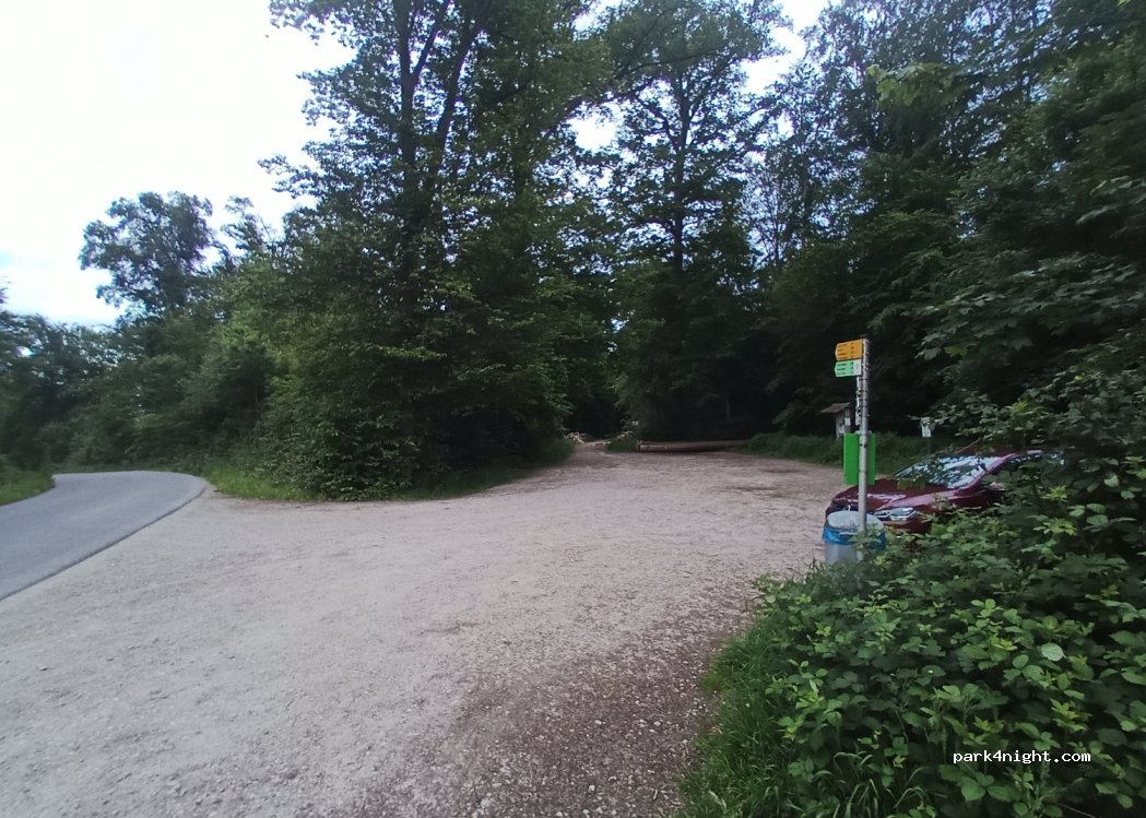 Wanderparkplatz zwischen Wannweil und Kusterdinden, direkt an einer Strasse gelegen, teilweise Schatten, ideal für Wanderungen im Wald geeignet