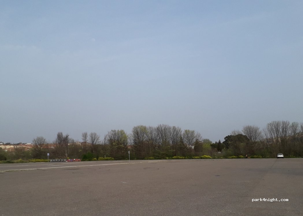 Muy amplio y de fácil acceso, bastante tranquilo para dormir, no me da sensación de seguridad para dejar la auto durante el día mientras visito la ciudad, es un recinto ferial donde la gente va a pasear, hacer cosas raras con los coches y las motos, echar punchitos, hacer deportes y pasear el perro. Para dormir se está fenomenal, no hay servicios pero si transporte publico cercano.
