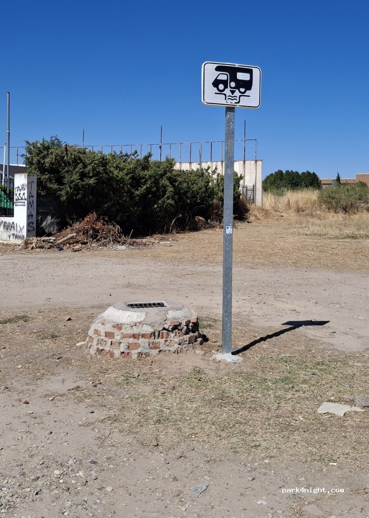 Aparcamiento grande y con alguna de sombra. Por la noche muy ruidoso debido al botellon que hacen los jovenes. La zona de vaciado solo sirve para las aguas negras, es imposible vaciar aguas grises debido a su altura. Bastante lejos del centro de Toledo.