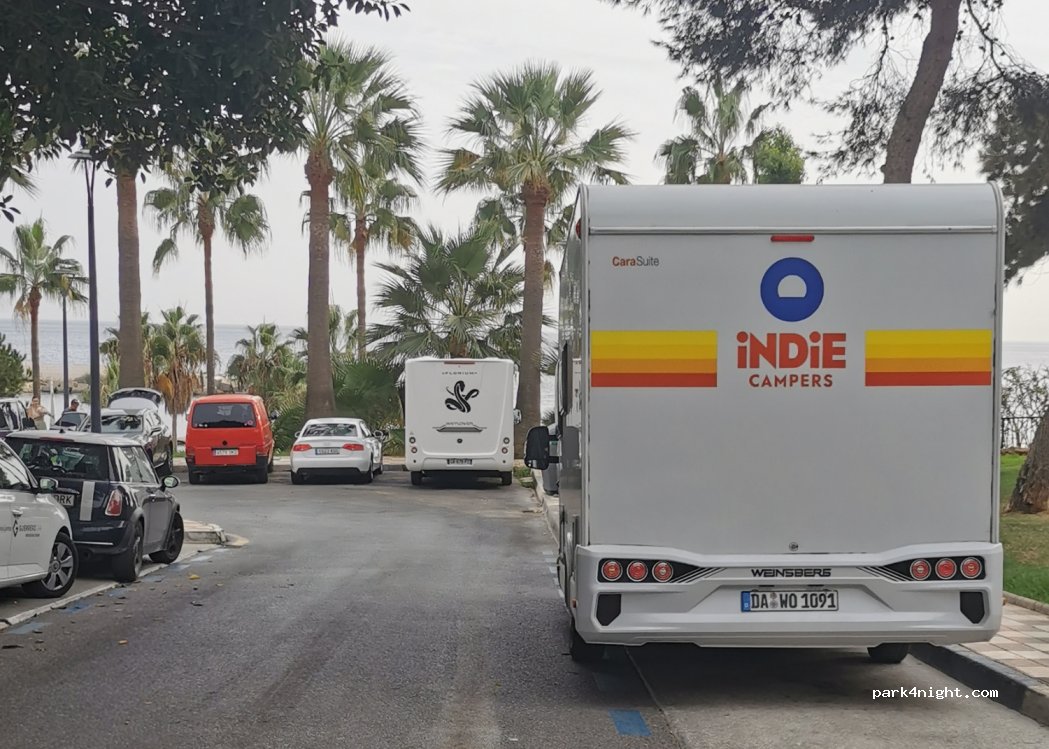 We were traveling in a big motor home and we simply park here. Beach with restaurant just 50m far. It is required a bit of luck or just to wait for a bigger lot to park.