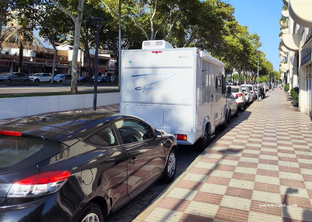 We parked here to walk around Marbella. It is 15m walk from the old city. That is a park meter. The spaces are just a few and not that big. We were lucky to find one.