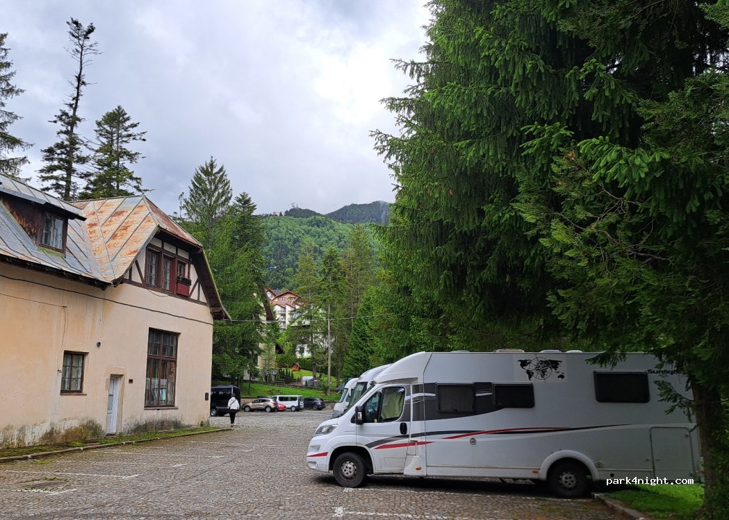 Great carpark right by the castle. This was the third carpark we tried as others were full - got lucky a motorhome was leaving. Costs 40 lei a day and they are happy for you to stay overnight. We stayed two nights and had no issues. Very quiet and it's flat. It was free on Monday - don't know if that's a temporary thing but castle closed Mondays and Tuesdays. About 20 minute walk to Sinaia town.