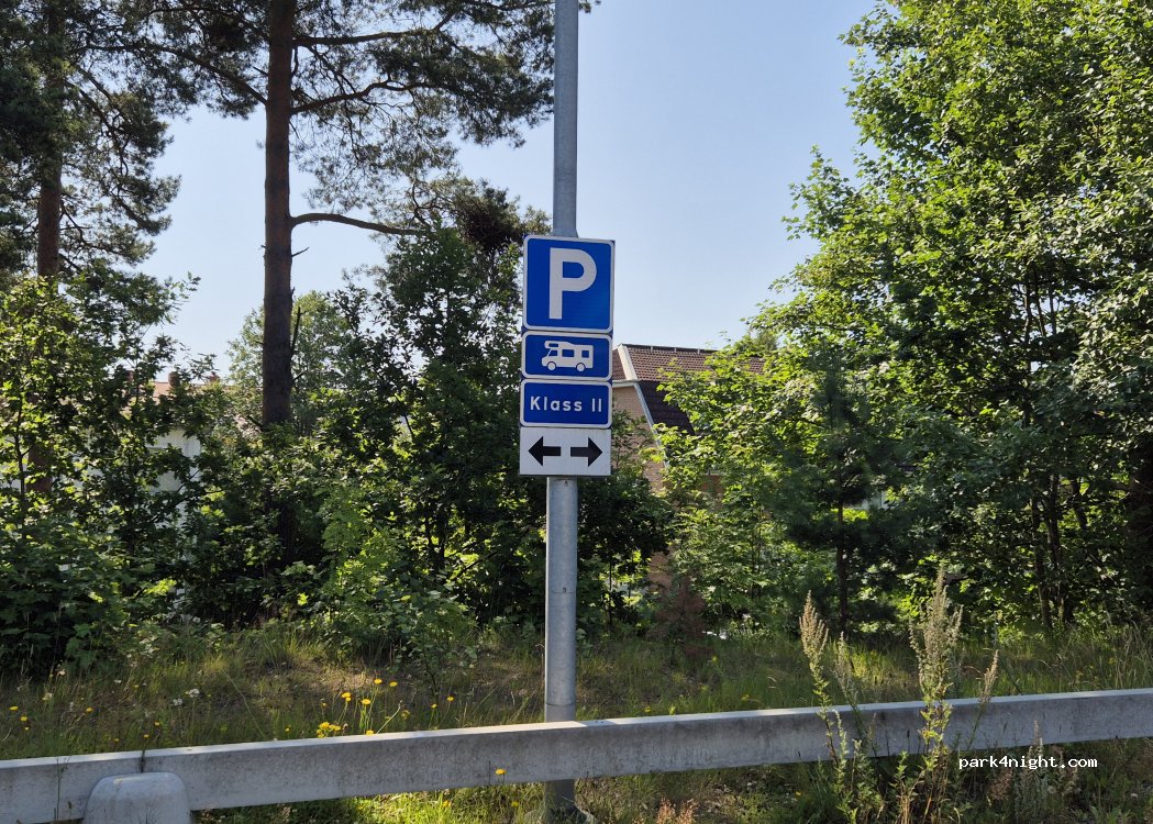 Auf einem größeren Schotterparkplatz im Stadtzentrum liegen diese 4 kostenlose Parkplätze für Fahrzeuge der Klasse II. In der Nähe ein Park mit 2 Seen, eine kleine Windmühle, 2 Spielplätze, Enten sowie öffentliche Toiletten. Die gekennzeichnete Fläche liegt hinten links.