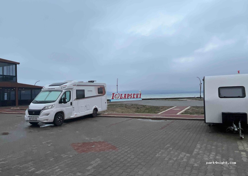 positives, great location, and easy to find and navigate to with largish motorhome 7.8 metres. Lovely view with a restaurant to one side and a cafe type food bar to the other side. Well done the Belediye for providing this free parking. Negatives, the stray dogs, they are both intimidating and very noise throughout the night. would I stay there again ? yes