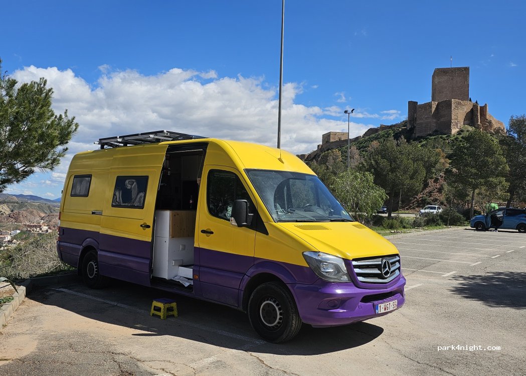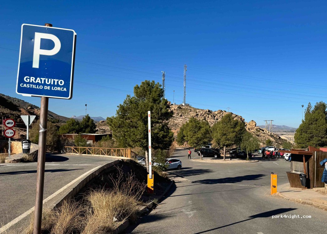 Een prima plek om te overnachten. Prachtig uitzicht over Lorca en omgeving. Politie surveilleert regelmatig, ook ' s nacbts. Het is ook een mooie plaats om van daaruit een wandelroute te nemen in het prachtige bergachtig achterland.