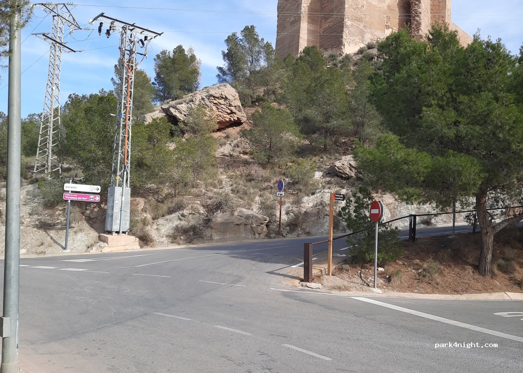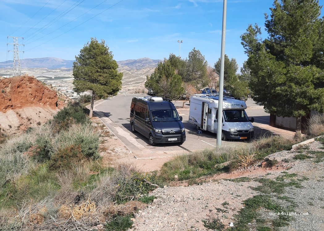 Castille de Lorca car park, follow these directions to access it. Several spaces suitable for 6 m vans, including a larger one at the back.