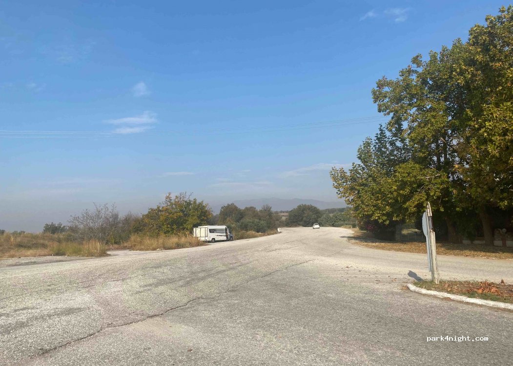 Huge lay-by off the Thessaloniki to Bulgaria motorway. No facilities, just bins and a restaurant. Spent a quiet night here together with 4 lorries, felt safe.