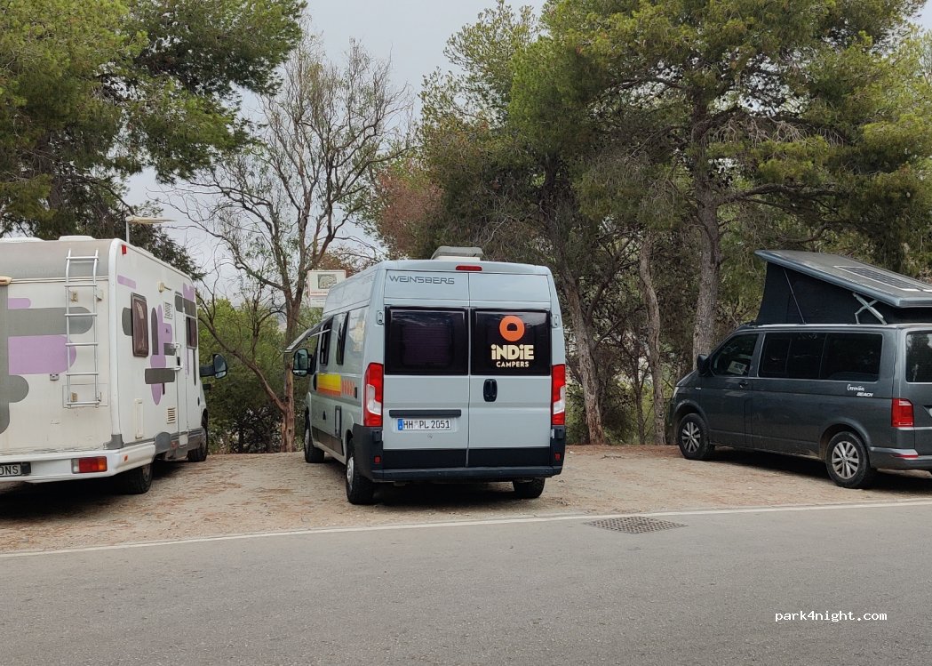 Habe hier sehr gut geschlafen. Wenn die Besucher des Castells abends gehen, kehrt Rohe ein. Die Plätze sind fast eben und es könnten auch 5 Vans Platz finden. Auf den geteerten Parkplätze nebenan lst zwischen 0H und 9H das Parken generell verboten.