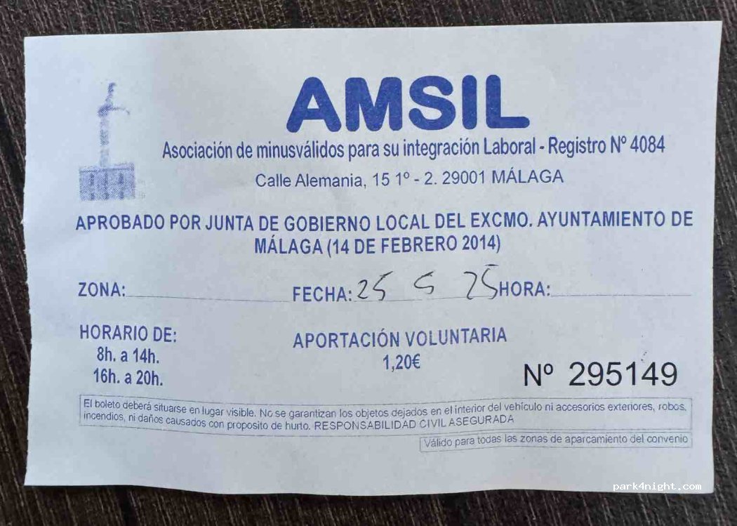 Ce parking se situe dans une zone basse émissions, il faut être enregistré auprès de la ville de Malaga. Nous n'avons pas pu y stationner. De plus la journée ce parking est réservé pour les visiteurs du château.