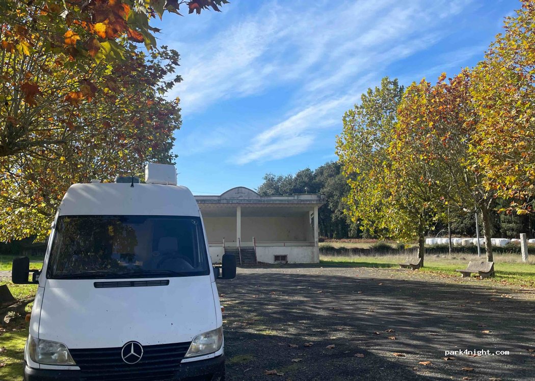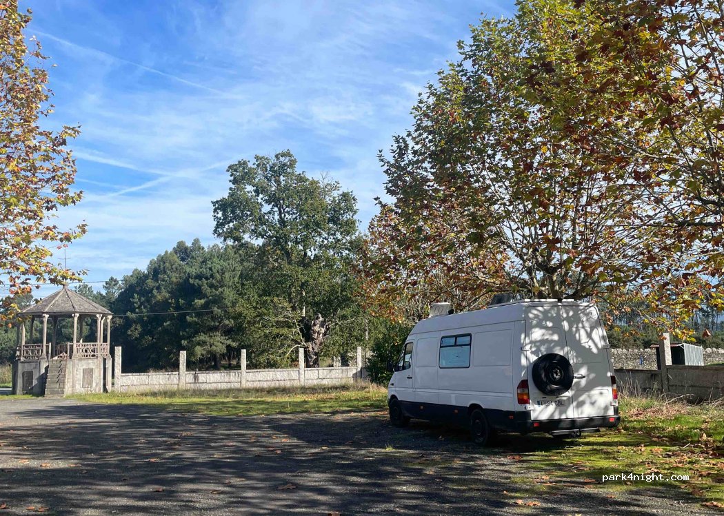 Plaza de fiestas de pueblo, hay una explanada para poder pernoctar y pasar el dia con un campo de fútbol al lado. Por la noche es muy silencioso y cerca hay varios furanchos para comer