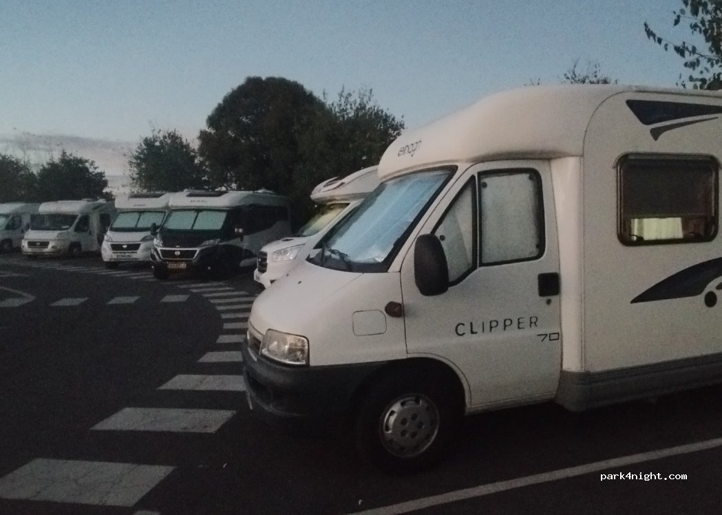 É um estacionamento amplo e perto do centro. Tem alguma inclinação mas há sempre espaço para estacionar. Passámos uma noite tranquila.