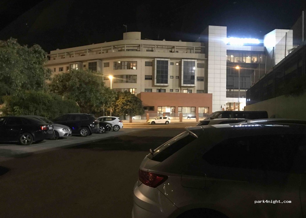 Gratis Parking naast voetbalstadion. Makkelijk om van hieruit Almería te verkennen met de fiets. Niet ideaal om te overnachten, naast drukke rotonde.
