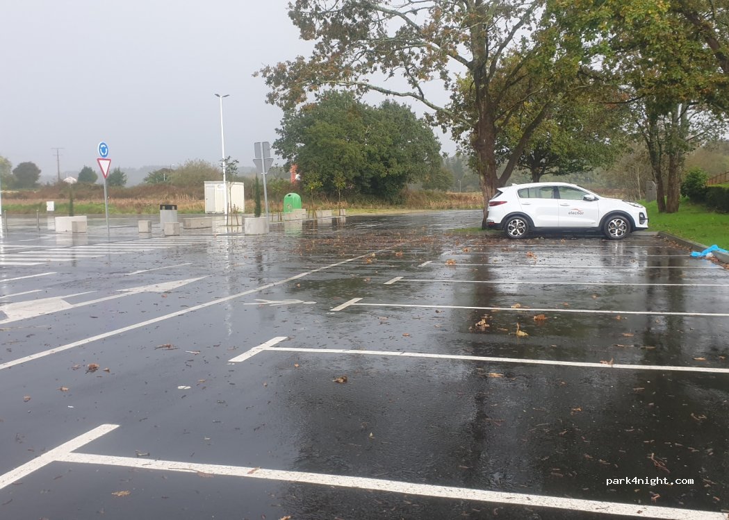Grand parking public très calme et plat à côté de la ville de Baio, idéal pour passer la nuit. De là, vous pouvez faire une belle promenade sur la rivière et visiter la Carballeira Municipal de Baio. Il y a une cafétéria juste à côté. Si vous souhaitez faire quelques courses (supermarché, pharmacie, boulangerie, etc.), vous pourrez vous rendre très rapidement au centre-ville à pied.