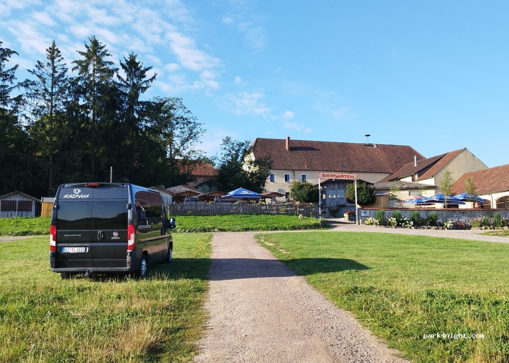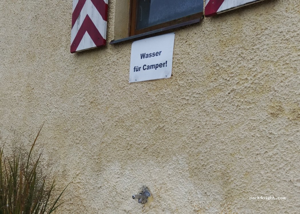 Wiesenparkplatz am Schloss Guteneck, nicht eben, zum übernachten nur bedingt geeignet. Wasseranschluss vorhanden.