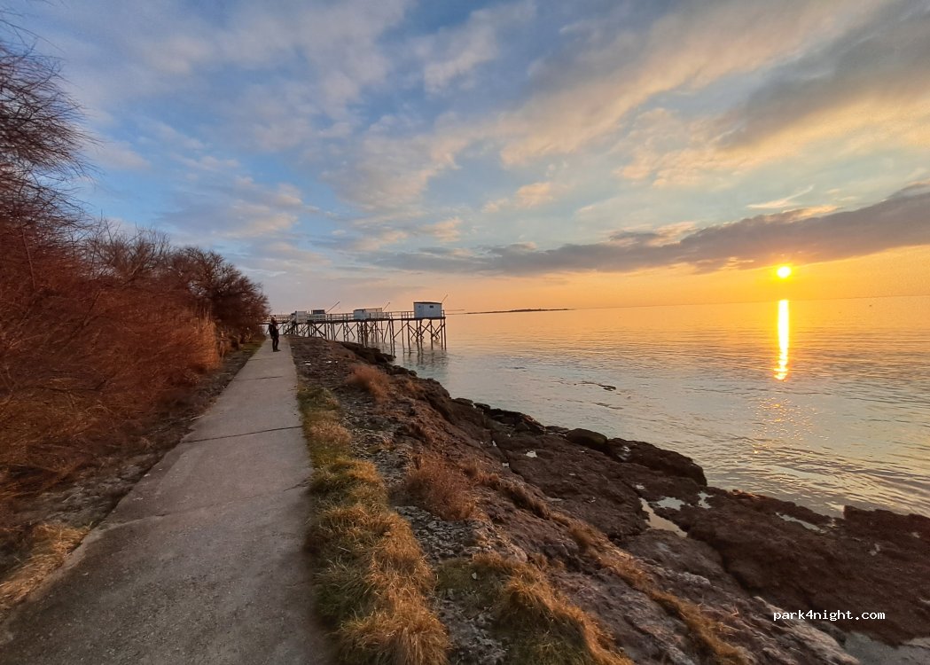 Bon rapport qualité prix ! 20€ pour 2 adultes et 2 enfants en T5 avec toit relevable! Sanitaires propres mais un poil vétustes ! Au ras de la plage, qui est jolie mais la mer ne donne pas envie ! La petite ville de Fouras est charmante ! Un bon spot pour dormir en paix et en sécurité à moindre frais !