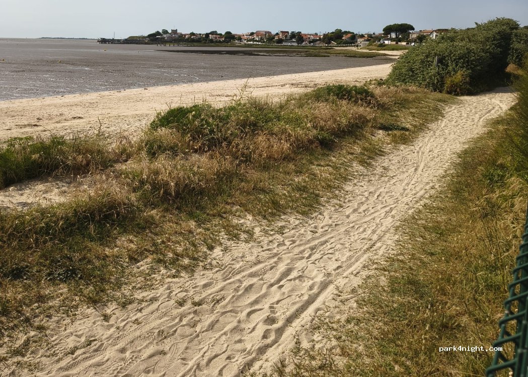 Ancien camping révision en camping car park. emplacement un peu juste. proche de la route mais calme la nuit. Attention pour les baigneurs, plage de vase à maree basse !
