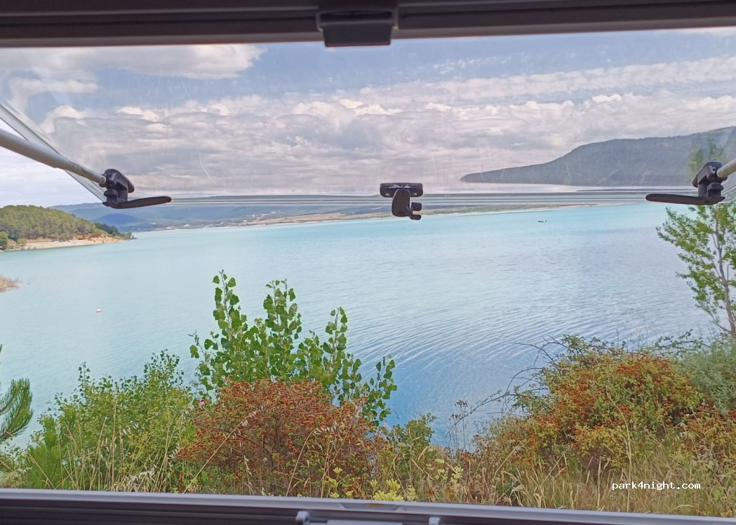 Les autres spots côté lac sont interdits au camping. Nous nous sommes donc rabattus sur ce grand espace qui permet de s'éloigner de la vieille route et en se positionnant bien laisse entrevoir le lac . Globalement calme et facile d'accéder au lac a pied.