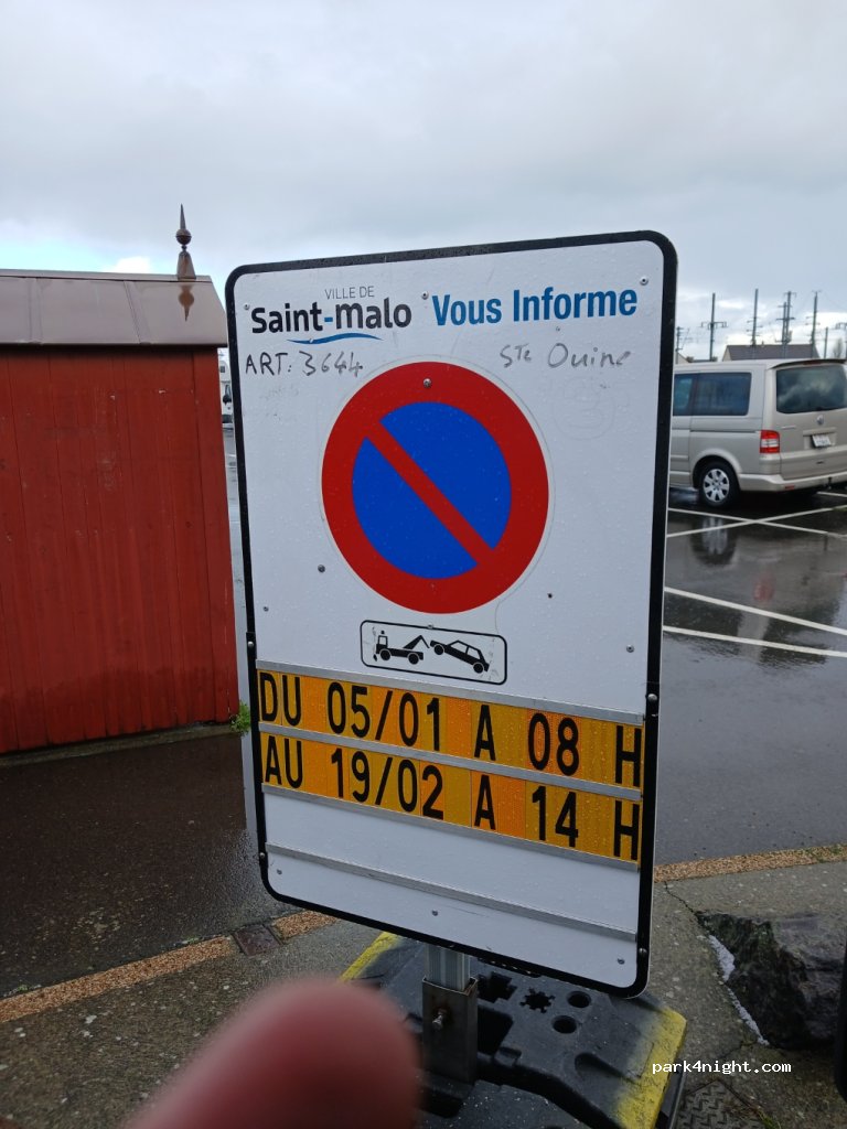 Großer Parkplatz in der Nähe von der Innenstadt von St. Malo. (ca 30 Minuten zu Fuß). Übernachtung möglich und hinreichend genutzt auch durch andere Camper. Parkgebühren werden stundenweise abgerechnet. Max. jedoch 7,50 Euro. Öffentliche Toilette sowie ggü liegend Entsorgungsmöglichkeiten vorhanden. Für einen kurzen Besuch der zauberhaften Stadt empfehlenswert.