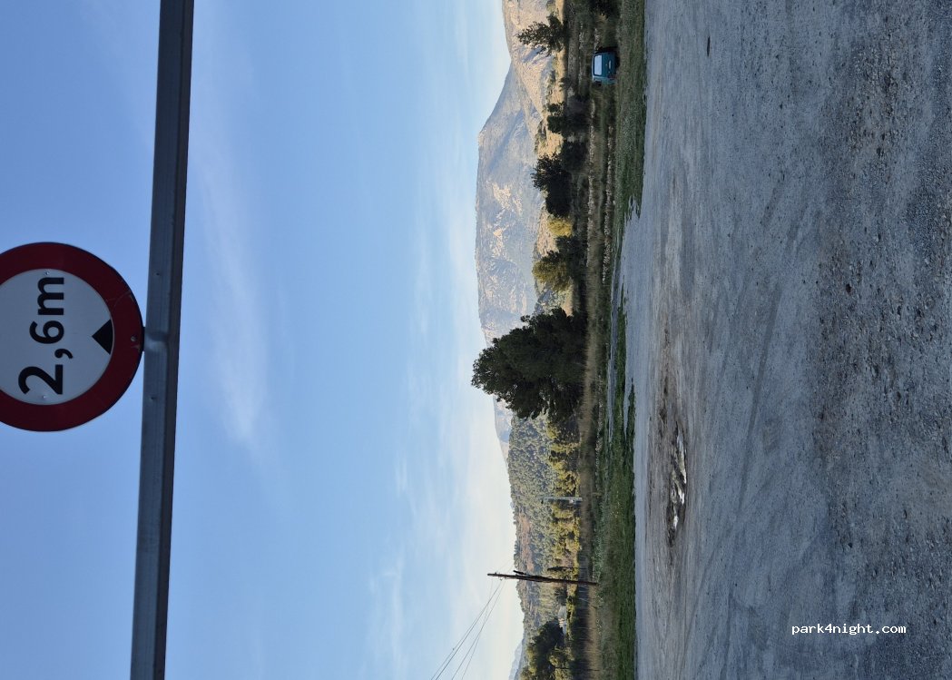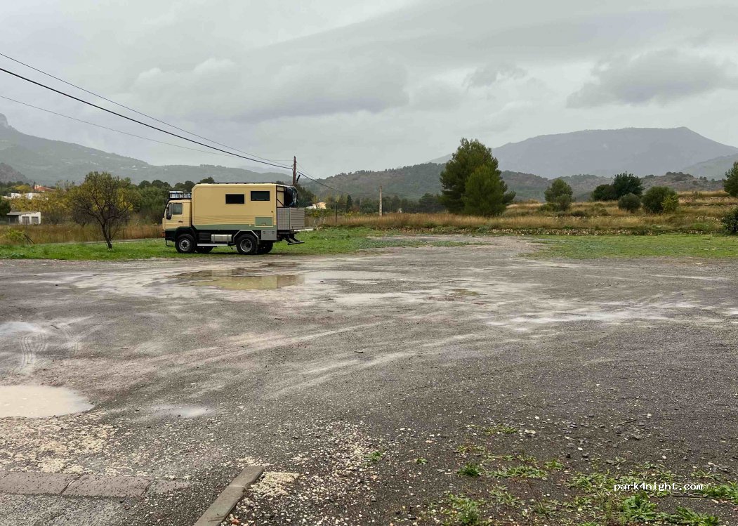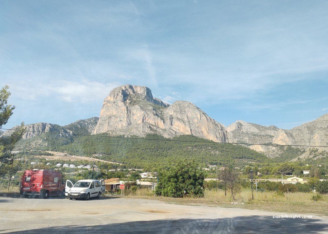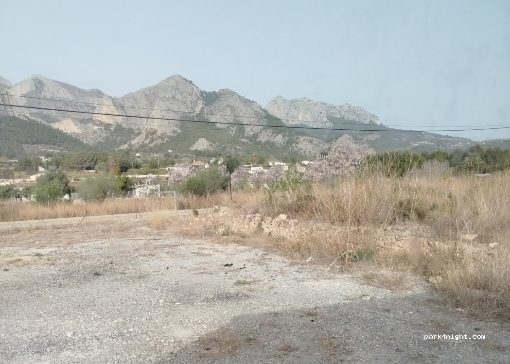 Great parking to spend the night. Nice mountain views and within walking distance to the downtown Polop. Cars passing by quite regularly but nothing too disturbing. We slept well.