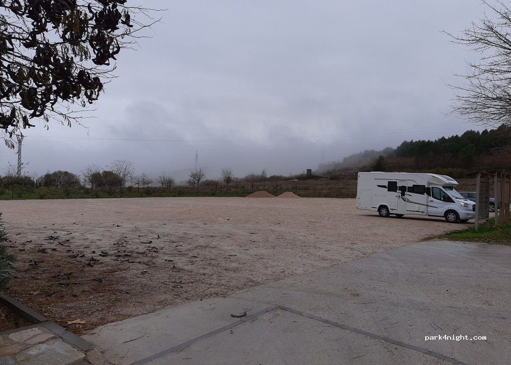 Gran zona d'aparcament a tocar del poble. Molt tranquil i al costat d'un restaurant.