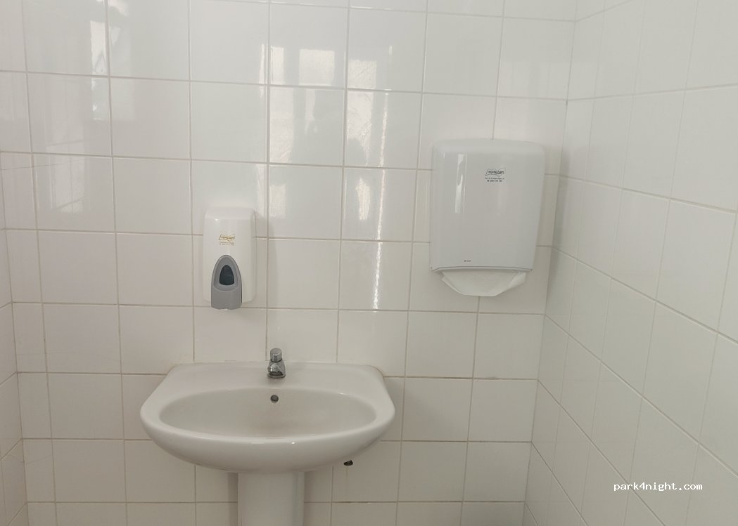 Spektakulärer Picknickbereich mit 6 Tischen, Kochbereich, Waschbecken und sauberer Toilette mit Seife und Papier