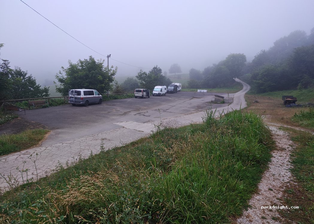 Endroit tranquille mais bondé. Nous sommes arrivés les premiers mais des voitures et vans sont arrivés jusqu’à 23h30, bien bruyant, complètement irrespectueux. Nous étions 8 vans, collés les uns aux autres. Dommage car jusqu’à 21h nous n’étions que 4 et bien espacés. Nous sommes partis dès le réveil. Bruit des cloches et des chiens qui aboient.