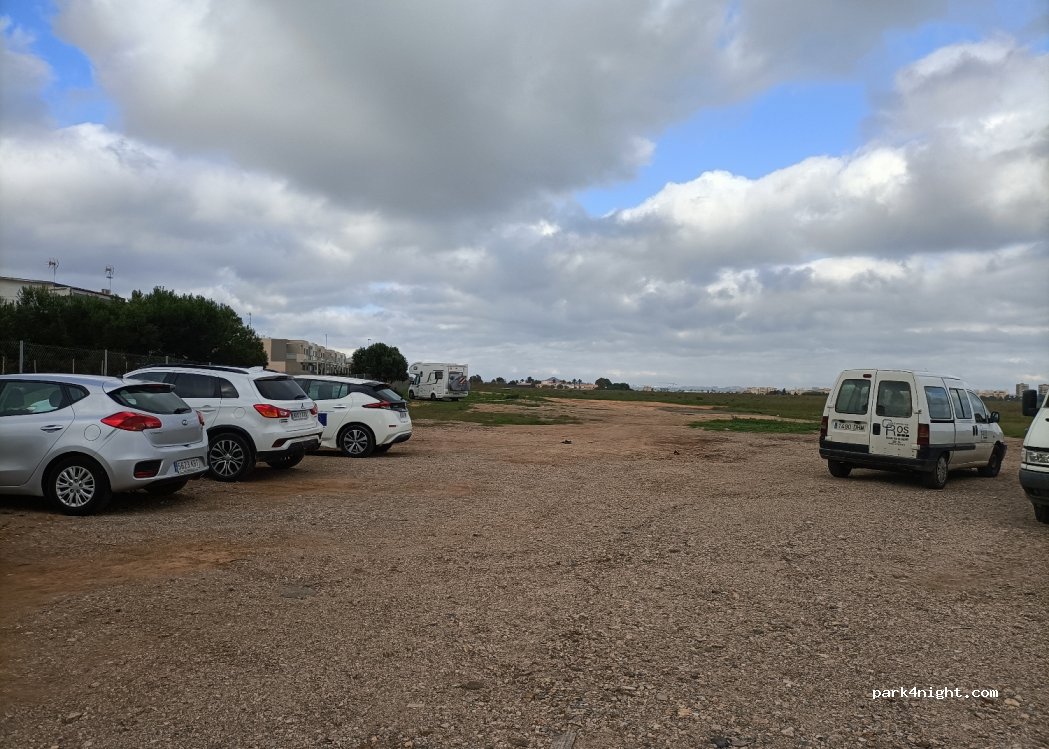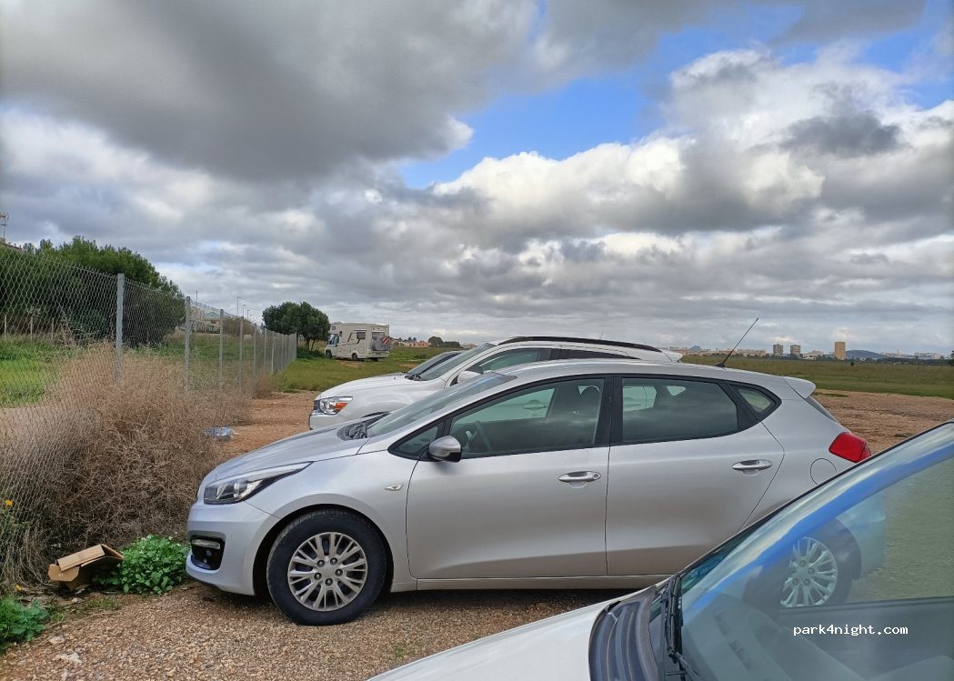 Zona para aparcar de tierra. tranquila. Sin servicios, en el pueblo cerca de bares, farmacia, carnicería, etc