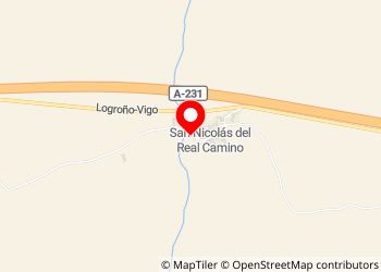 Area di sosta per i pellegrini a Compostela, alle spalle di un piccolo villaggio. Tavoli da picnic, acqua potabile, bidone della spazzatura. Terreno erboso. Punto d'acqua accanto alla chiesa e cisterna per l'acqua piovana.