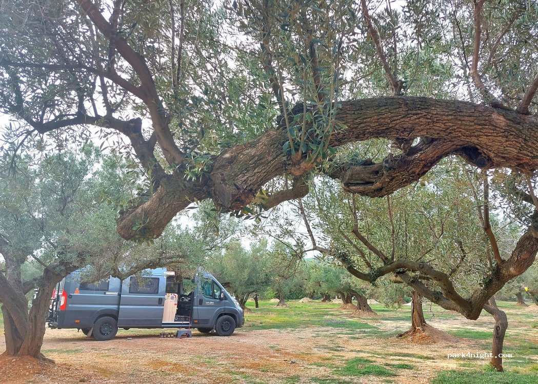 Een prachtige plek om te verblijven midden in de olijfgaard van Greg. Niets dan olijven en een prachtige sterrenhemel. Nu nog geen voorzieningen maar Greg stelt zijn eigen toilet en douche beschikbaar voor wie daar gebruik van wil maken. De voorzieningen komen in de toekomst. Greg legt je met liefde alles uit over de olijven. Neem zeker zijn biologische olijfolie mee naar huis! Au revoir Greg!