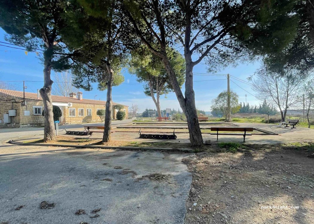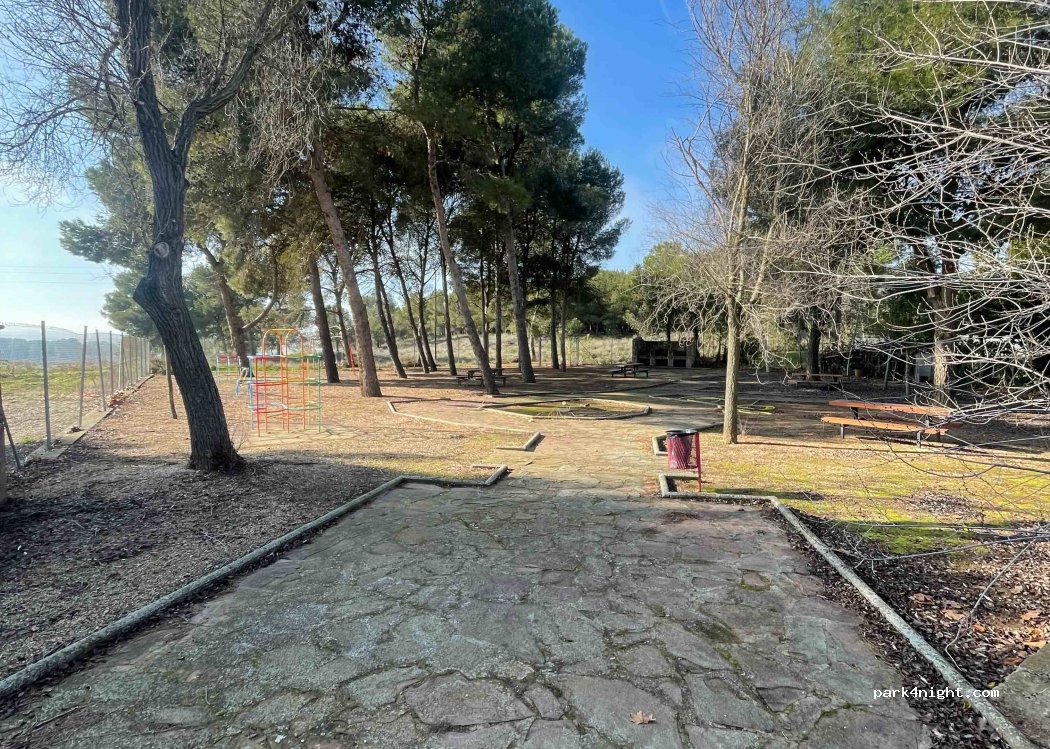 Flat area where you can spend the night in Sodeto, a quiet town with a shop, bar and an area for filling and emptying grey.