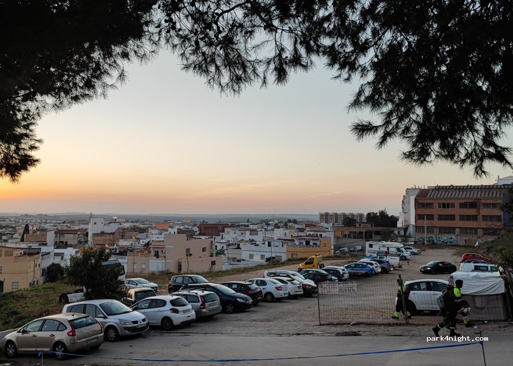 Buen lugar para visitar Jerez , cerca del centro andando. Dormir sin problemas y tranquilo hasta que empiezan a llegar coches por la mañana. La salida es una cuesta corta que cualquier AC sube y sale sin problemas, nosotros vamos con una de 7,50 y tanto la entrada como la salida del parquing se hace perfectamente.