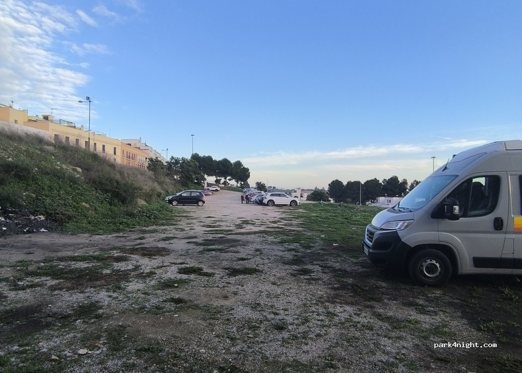 Przyjechaliśmy na parking po godzinie 19:00. Nikogo nie było i nikt nie wymagał opłaty. W nocy słychać było przejeżdżające auta, motory i co jakiś czas ktoś strzelał fajerwerkami. Dużo śmieci. Na końcu parkingu w aucie bez kół mieszka bezdomny, ale nie zaczepiał nas i nie zwracał uwagi. Rano około południa przyszedł do nas koleś po opłatę 2€ i wręczył nam bilet. Dobra lokalizacja do zwiedzania.