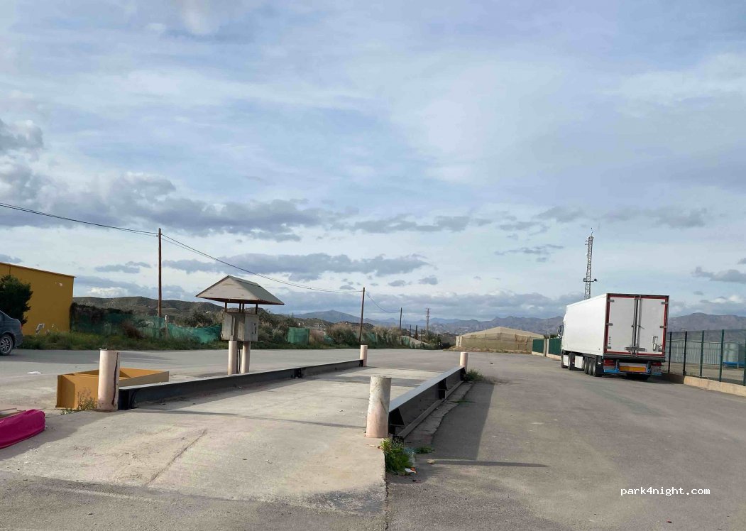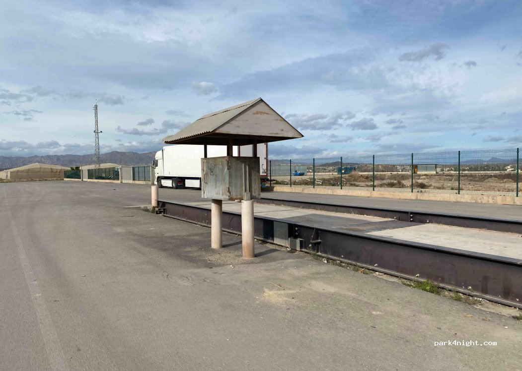 Freely accessible truck scales up to 60t. Minimum weight 400kg, accuracy 20kg. Unfortunately, there are no details on how to operate the machine. Only that it costs 3 euros and that a ticket comes from the machine.