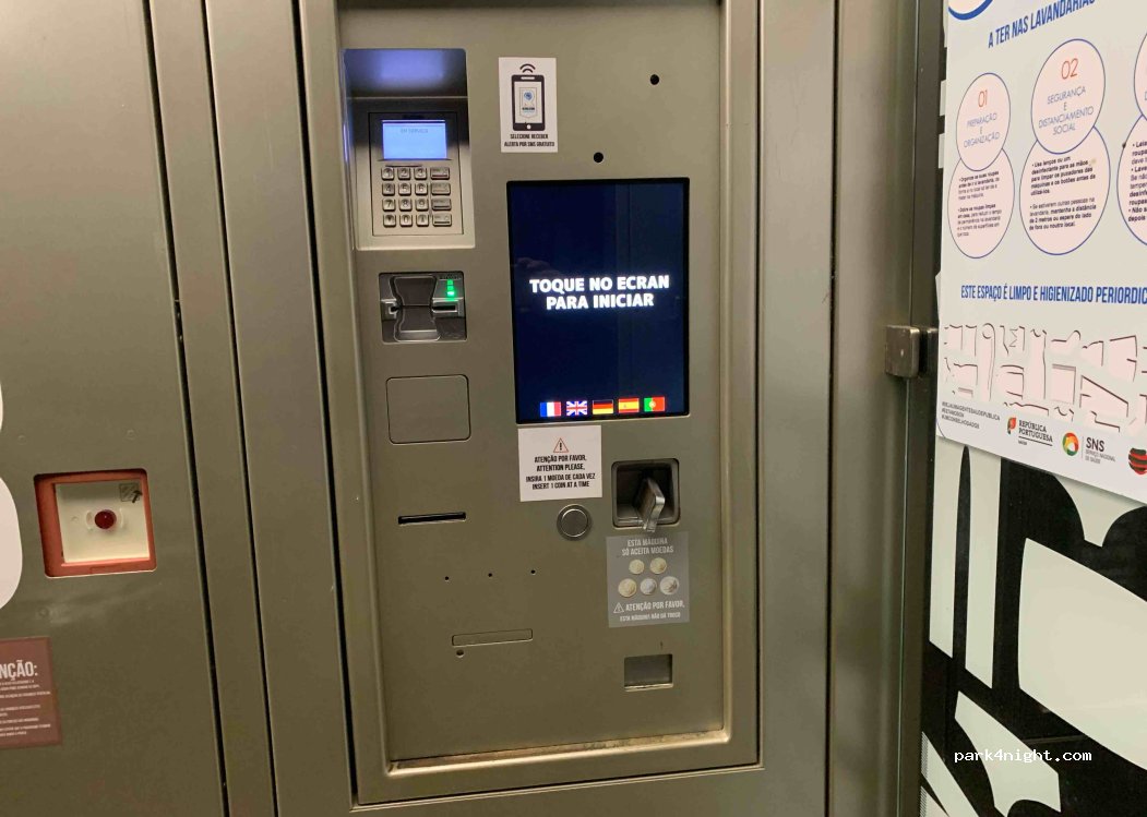 Supermarché Mini Preço avec laverie 24h/24 (lavage 8 et 18 kg + séchage 18 kg). Paiement par carte de crédit ou pièces de monnaie. Instructions en 5 langues. Nombreuses places de parking gratuites et aucune restriction de taille.
