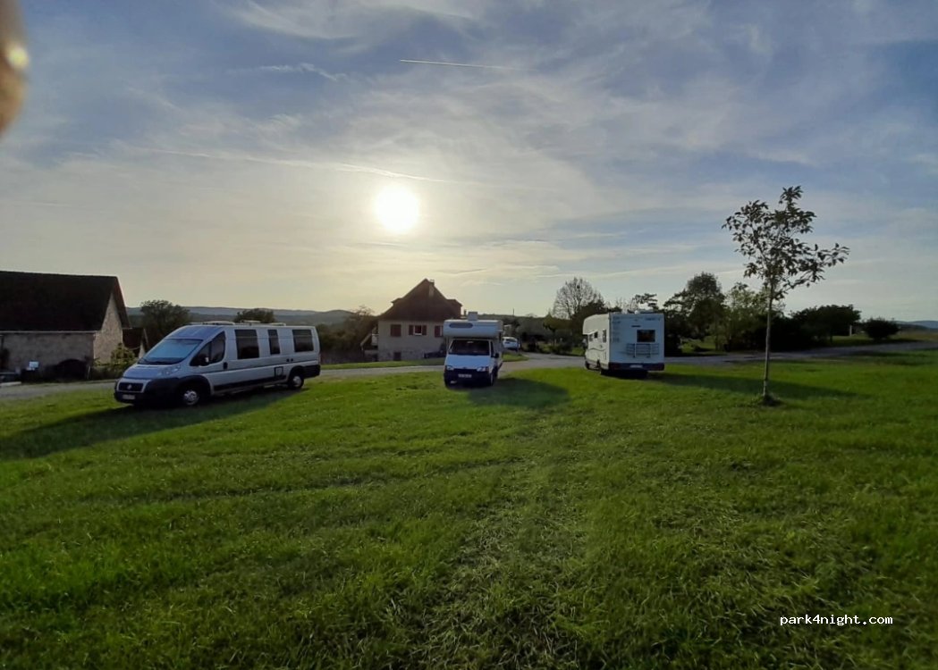 Fijne rustige plek. 5 plaatsen op grasveld. De auto staat op grind. De auto staat bijna vlak. Er loopt een hond, kip en meerdere katten rond. Zeer mooie plek om sterren te kijken. Ligt op een heuvel. Daardoor is er altijd wel een beetje wind dat voor verkoeling zorgt. Vriendelijk omtvangst. We mochten onder de boom zitten tegenover de camper. Dat was fijn want het zijn geen schaduwplaatsen.