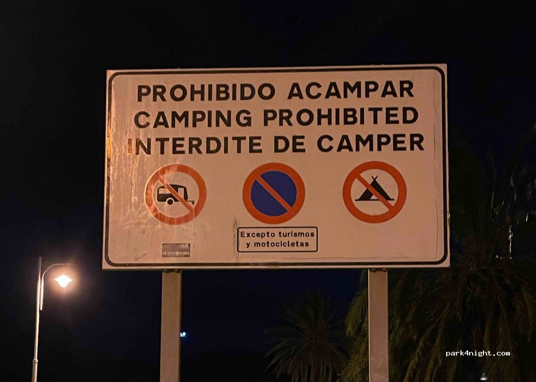 Aparcamiento público sin servicios directamente en el paseo marítimo. Aquí está estrictamente prohibido acampar, así que mantén las puertas cerradas. Para furgonetas ok.