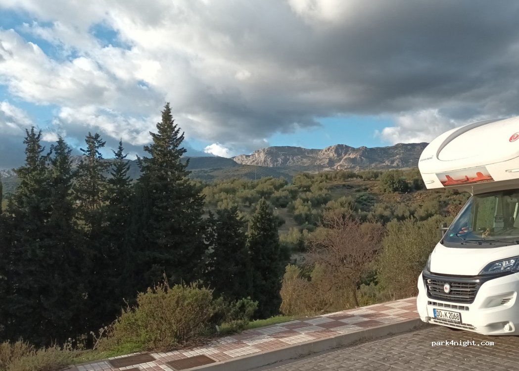 Der Platz war für uns perfekt, ich denke da hätten auch mehr als 2 Womos Platz. Wir haben dort in der Karwoche mit unserem VW-Bus 2 Nächte verbracht und die Passionsspiele und die Osterprozession angeschaut. Keine Infrastruktur, weit genug weg vom Ort, dass man auch schlafen kann, wenn die locals noch feiern! Leicht schräg.