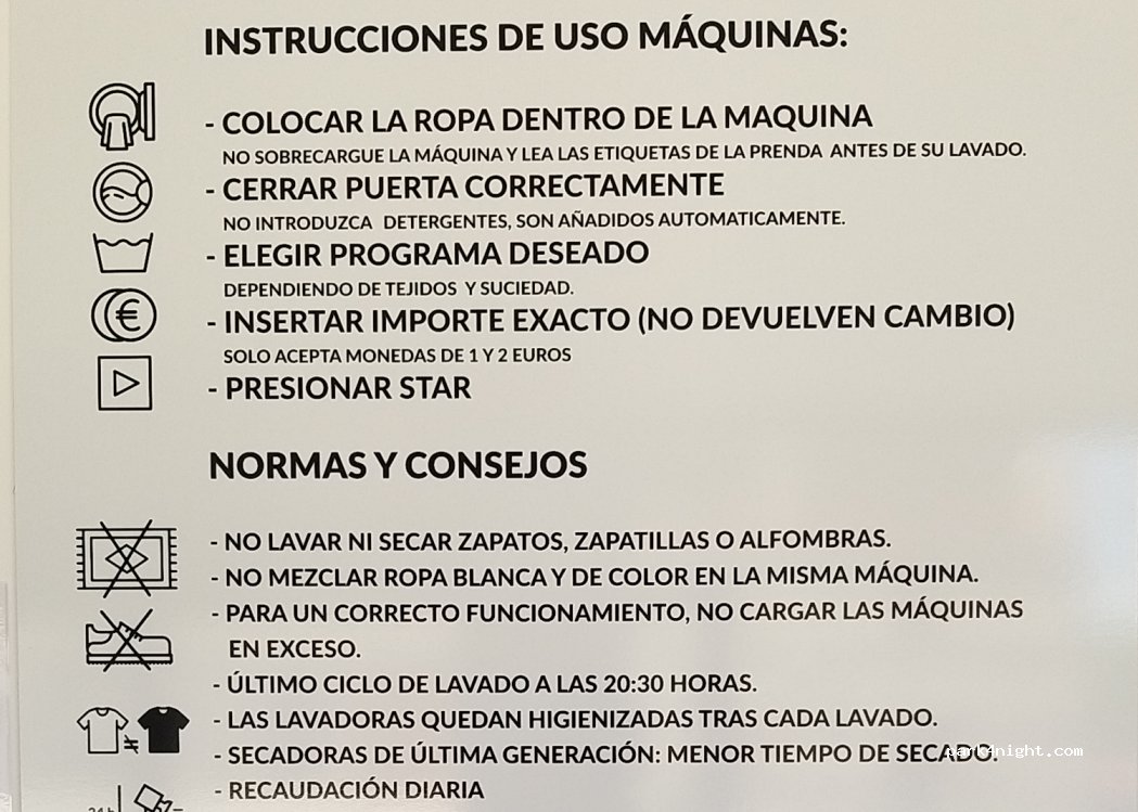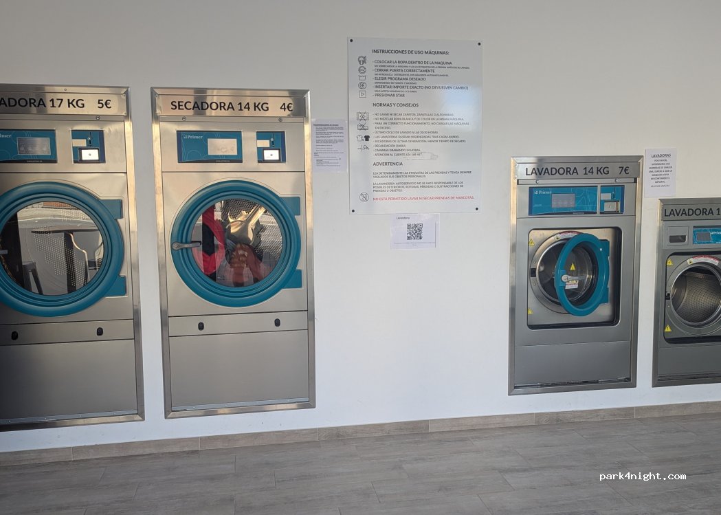 Sitio limpio, fácil de usar, 2 lavadoras y 2 secadoras, solo monedas. Hay una máquina para cambiar billetes detrás de una de las máquinas de bebidas. Máquina para cafés y snacks, no las usé. Clean and easy service. Cash only. There's a coin machine next to the vending machines. There are snacks and coffee vending machines, not used them.